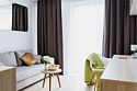 При бронировании данной категории возможно размещение в апартаменте с кондиционированием. Апартамент с оснащением кондиционером/посудомоечной машиной предоставляется при наличии возможности и не является гарантированной услугой. Апартамент Executive Suite - двухкомнатный номер со спальней и гостиной. Гостиная оснащена односпальным диваном. В спальне большая кровать. Апартамент выходит окнами в тихий стильный двор отеля и оснащен необходимой техникой - микроволновой печью, варочной панелью, стиральной машиной, сушилкой, двумя сан.узлами - всем необходимым для комфортного проживания. Просим обратить внимание: - халаты предоставляются бесплатно по запросу. - при выборе размещения ребенка без отдельного спального места постельное белье, полотенца, косметические средства дополнительно не предоставляются. - в некоторых апартаментах нет возможности поставить детскую кроватку в спальне (только в гостиной) - запрещено размещение с животными Комплектация и фотографии номера могут отличаться от указанных в описании номера.Услуги и удобства
