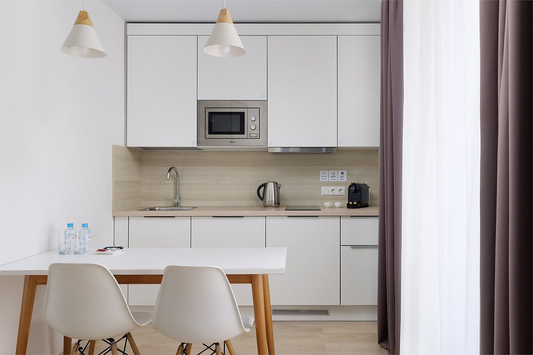 Апартаменты категории располагают всем необходимым для комфортного проживания от 1 до 3 человек. Апартамент оснащен: двумя раздельными кроватями, рабочей зоной с письменным столом, полностью оборудованной кухней. Вид из апартаментов открывается на улицу или во двор. По запросу предоставляется детская кровать для ребенка до 3 лет. Услуга предоставляется бесплатно. Обращаем Ваше внимание, что халаты предоставляются бесплатно по запросу. В качестве дополнительного места предоставляется еврораскладушка. Услуга платная, предоставляет по запросу. При выборе размещения ребенка без отдельного спального места предоставляются только косметические средства и полотенца.Услуги и удобства