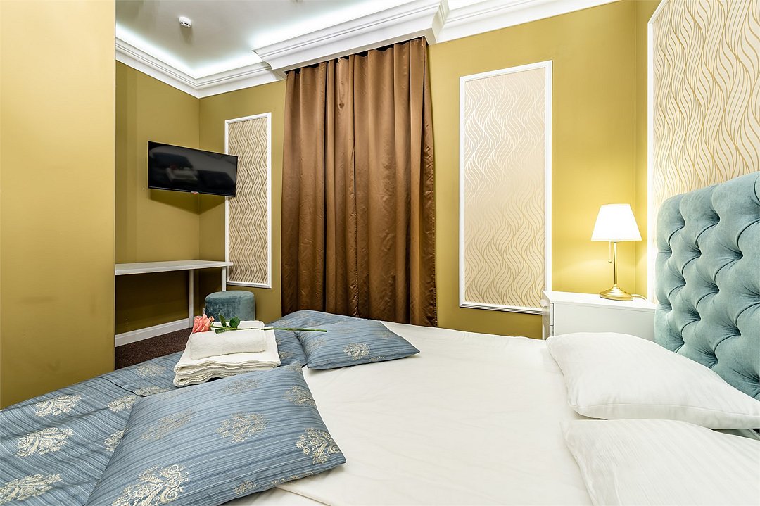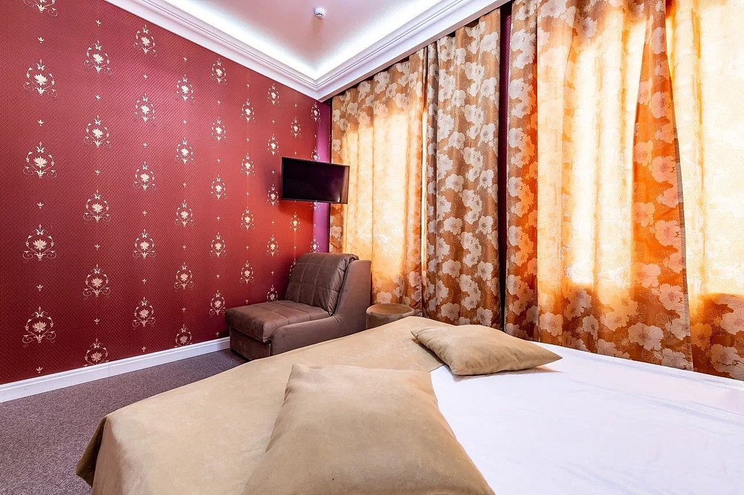 Просторный уютный номер с дизайнерским ремонтом, оснащенный всеми современными удобствами. Для комфортного сна предусмотрена удобная большая кровать, качественное постельное белье и непрозрачные шторы блэкаут. Ванная комната с душем, туалетно-косметические принадлежности, полотенца, тапочки, фен. Так же в номере телевизор с плоским экраном.Услуги и удобства