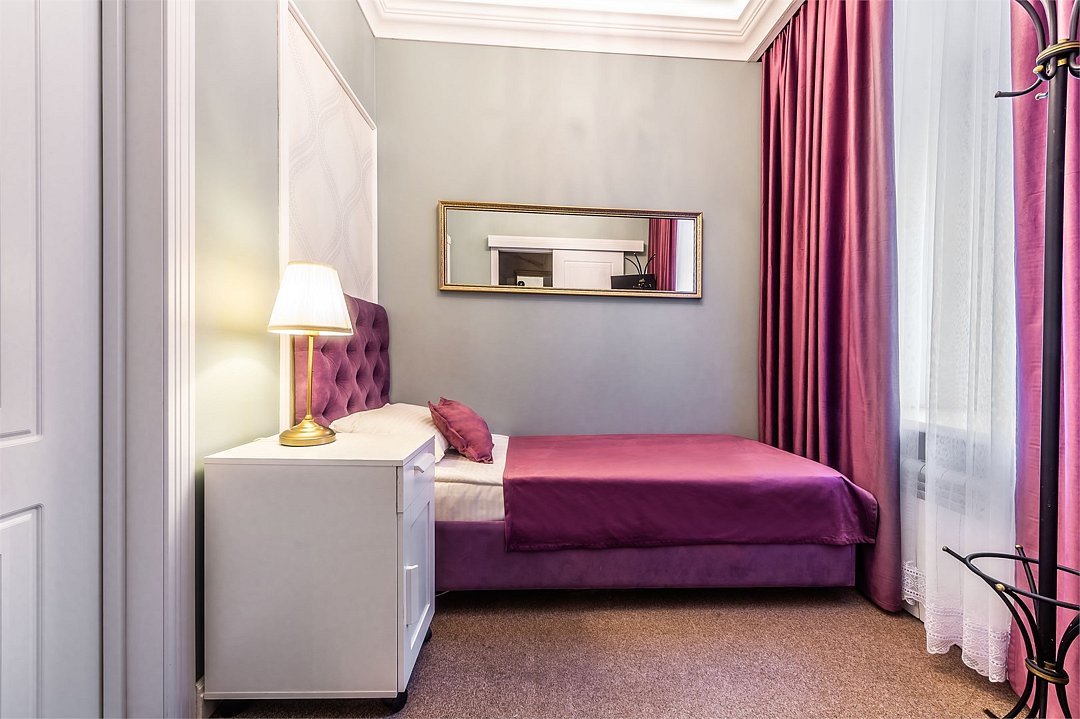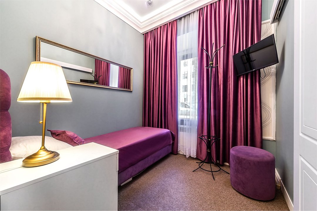 Небольшой уютный номер с дизайнерским ремонтом, оснащенный всеми современными удобствами. Для комфортного сна предусмотрена удобная односпальная кровать, качественное постельное белье и непрозрачные шторы блэкаут. Ванная комната с душем, туалетно-косметические принадлежности, полотенца, тапочки, фен. Так же в номере телевизор с плоским экраном и бесплатный wifiУслуги и удобства