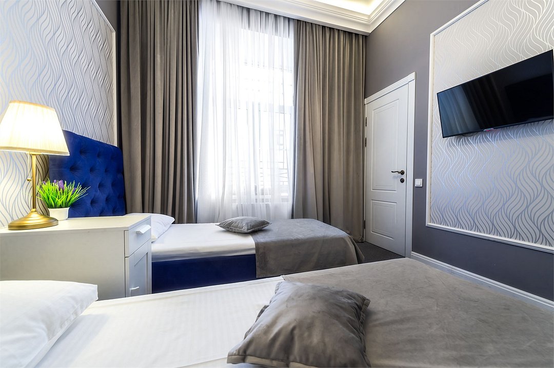 Просторный уютный номер с дизайнерским ремонтом, оснащенный всеми современными удобствами. Для комфортного сна предусмотрена удобная кровать с одной кроватью или двумя раздельными, качественное постельное белье и непрозрачные шторы блэкаут. Ванная комната с душем, туалетно-косметические принадлежности, полотенца, тапочки, фен. Так же в номере телевизор с плоским экраном.Услуги и удобства