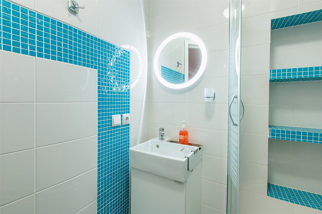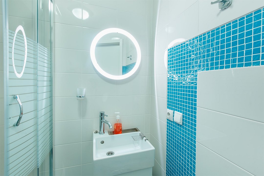 телевизор, интерактивное телевидение, Wi-Fi, кондиционер, система климат-контроля, светильник, фен, обогреватель, душевая кабина, санузел, банные полотенца, две односпальные или большая двуспальная кровать, ортопедический матрас, вешалки, зеркало, унитаз, раковина, косметическое зеркало, отопление, ламинатВ номере