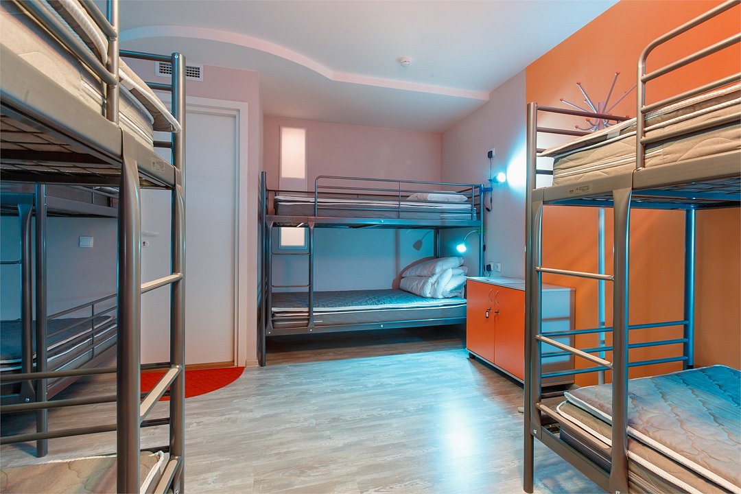 Общий номер с четырьмя двухъярусными кроватями с ортопедическими матрасами. Номер оборудован минимальным климатическим оборудованием. В номере есть вешалка для верхней одежды, а так же индивидуальные тумбочки с замочками, все удобства на этаже. На всей территории отеля бесплатный Wi-Fi интернет.Услуги и удобства