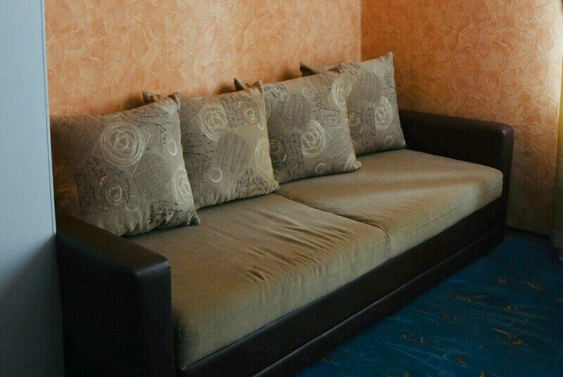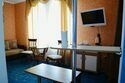 Двуспальная кровать, диван, кресло, телевизор с плоским экраном, комод, тумбочки, холодильник, сплит-система, чайник, с/у совмещенный (душ+таулет)