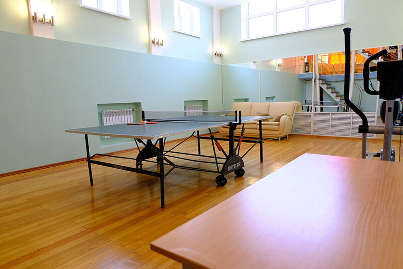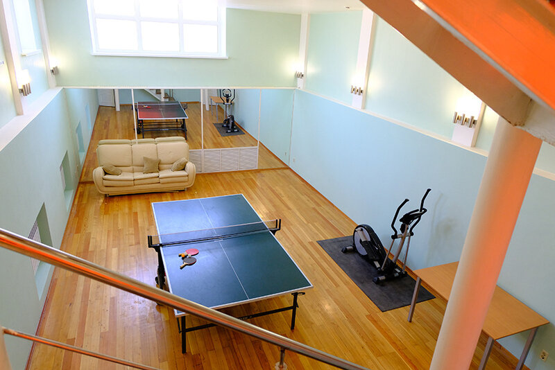 Любители спорта и здорового образа жизни уже оценили зал, в котором есть эллиптический тренажер, стол для настольного тенниса и диван для отдыха.