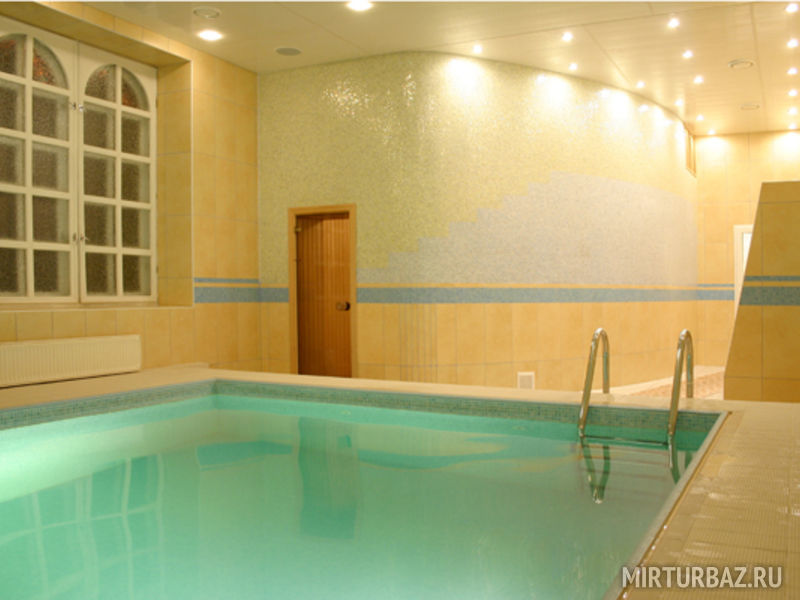 Вместительный бассейн объемом 44,2 м³ находится в постоянном процессе очистки и дезинфекции. Контролировать температуру воды можно по своему усмотрению.