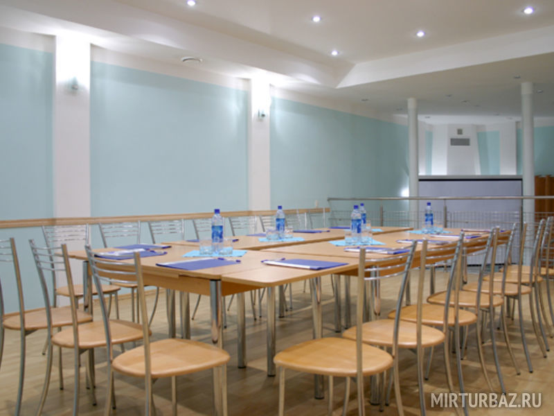 В конференц-зале на 50 человек есть возможность провести деловое заседание, семинар, тренинг или презентацию. В пользование гостей предоставляются аудио и видео аппаратура, DVD-кинотеатр с большим экраном, удобная мебель. Любое мероприятие можно сопроводить видеоматериалами, которые будут транслироваться на широком экране. Каждый участник будет задействован во встрече, так как большой стол позволит видеть всех собравшихся, а благодаря хорошей акустике — каждый будет услышан.
