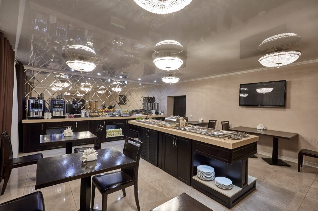 Гостям предлагается завтрак «шведский стол». В ресторанах отеля подают русские и итальянские блюда. Во внутреннем ресторанном дворике отеля есть детская площадка с маленьким прудом. Ресторанный дворик открыт в будние дни с 18:00 до 24:00.
