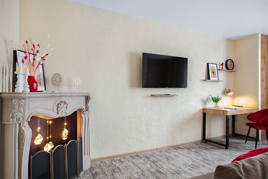 телевизор, Wi-Fi, интернет, кондиционер, светильник, фен, кофемашина, микроволновая печь, утюг, ванная комната, халаты, банные полотенца, тапочки, гигиенические средства, косметические средства, кровать «King size», гладильная доска, диван, шкаф для одежды, вешалки, обеденный стол, зеркало, набор посуды, сейф, стиральная машина, чайник, унитаз, раковина, мягкая мебель, обеденная зона, гостиная зона, отопление, душ, вид на город, кухонная посуда, стаканы, столовые приборы, кофейный столик, стул, стол, туалетные средства, туалет, сушилка для белья, цифровое тв, диван-кровать, раскладной диван, телевизор с плоским экраном, мини-холодильник, мини-кухня, телевизор со Smart TV, номер для некурящих, рабочий стол, чайная станция, мылоВ апартаментах