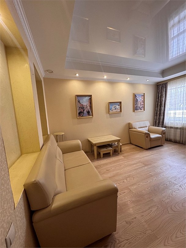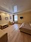 1,5 спальная кровать+диван кровать,2 прикроватные тумбочки, журнальный столик,2 пуфика, стул, вешалка +тумба, зеркало, часы, плазменный ТВ, кондиционер, телефон, бесплатный Wi Fi. Душ, кабина ,мебель для ванной ,фен, набор личных принадлежностей, махровые полотенца, халат, тапочки.Услуги и удобства