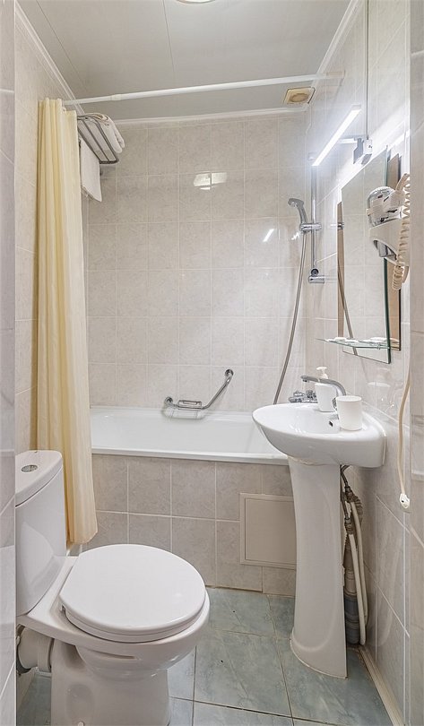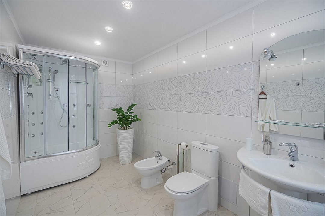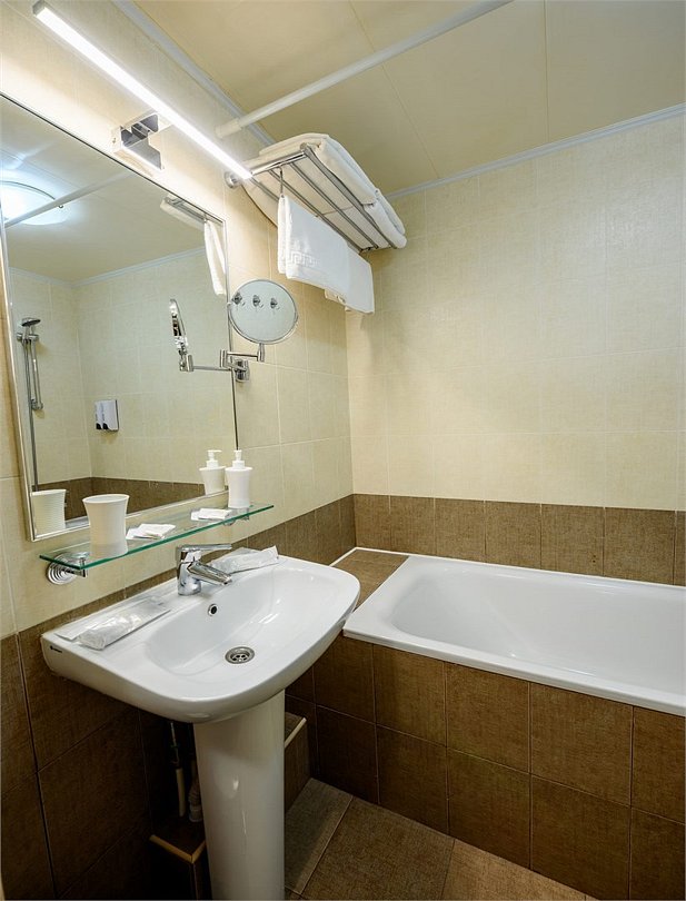 В номере имеется все необходимое для комфортного отдыха. Номер оснащен сплит-системой, имеет отдельную туалетную комнату с ванной. К услугам наших гостей телефон, телевизор, холодильник, интернет. В стоимость номера входит завтрак с 7:00 до 10:00, крытый бассейн (в зимний период) с 7 до 9 утра и открытый бассейн (в летний период с 10:00 до 21:00.Услуги и удобства