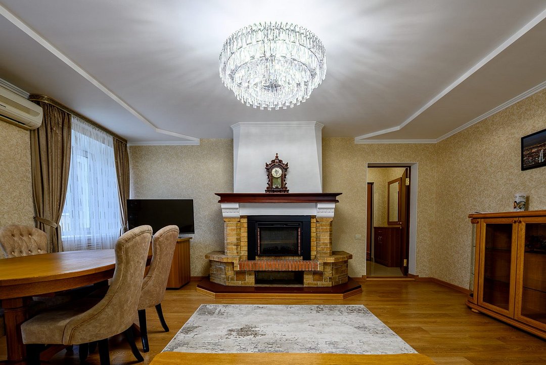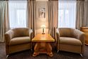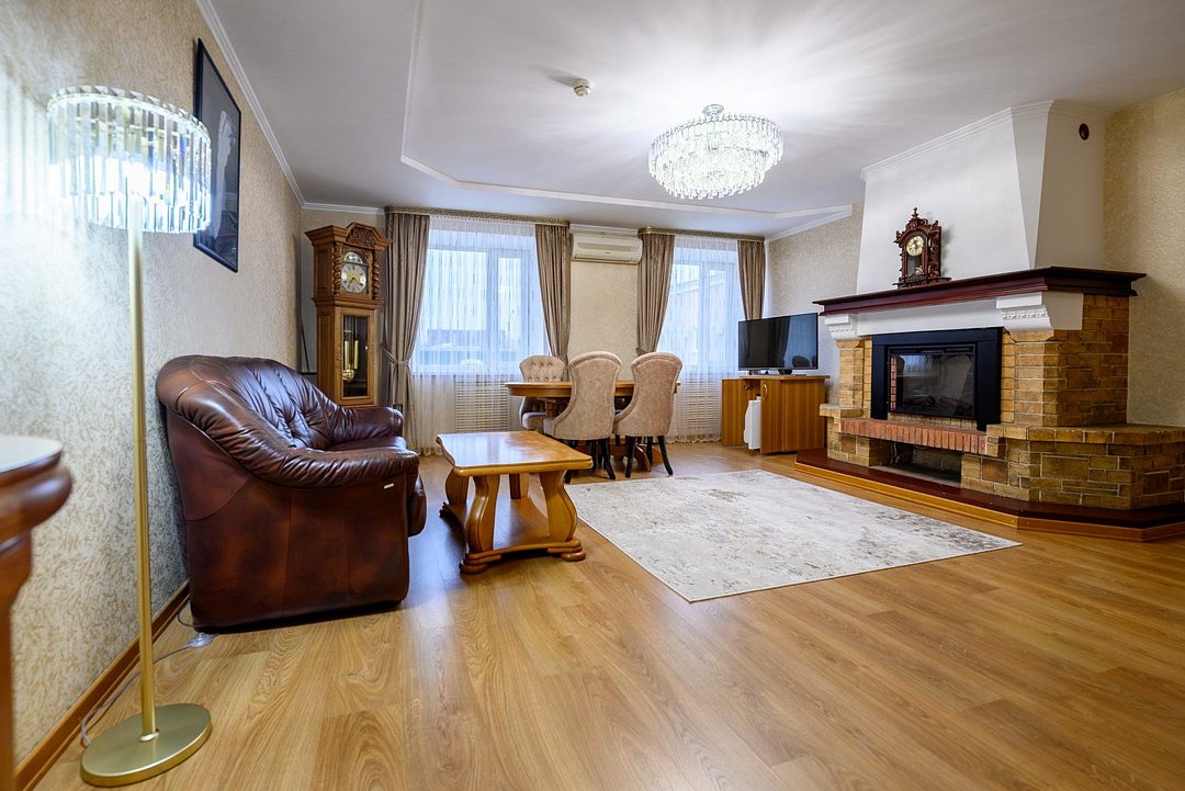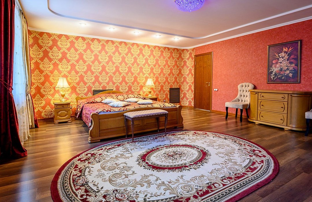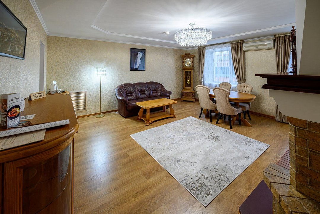 Номер состоит из каминного зала, спальни, гардеробной, ванной комнаты с душевой кабиной. В номере имеется все необходимое для комфортного отдыха. Рассчитан на проживание одного или двух человек и имеет одну двуспальную кровать, В каминном зале имеется все необходимое как для приятного отдыха, так и для ведения деловых переговоров. Номер оснащен сплит-системой, имеет телефон, телевизор, холодильник, интернет. В стоимость номера входит завтрак с 7:00до 10:00, крытый бассейн (в зимний период) с 7 до 9 утра и открытый бассейн (в летний период) с 10:00 до 21:00Услуги и удобства