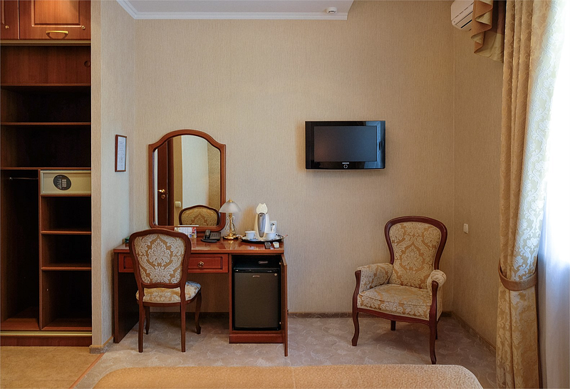 В номерах этой категории для комфорта гостей предусмотрено все необходимое для работы и отдыха.