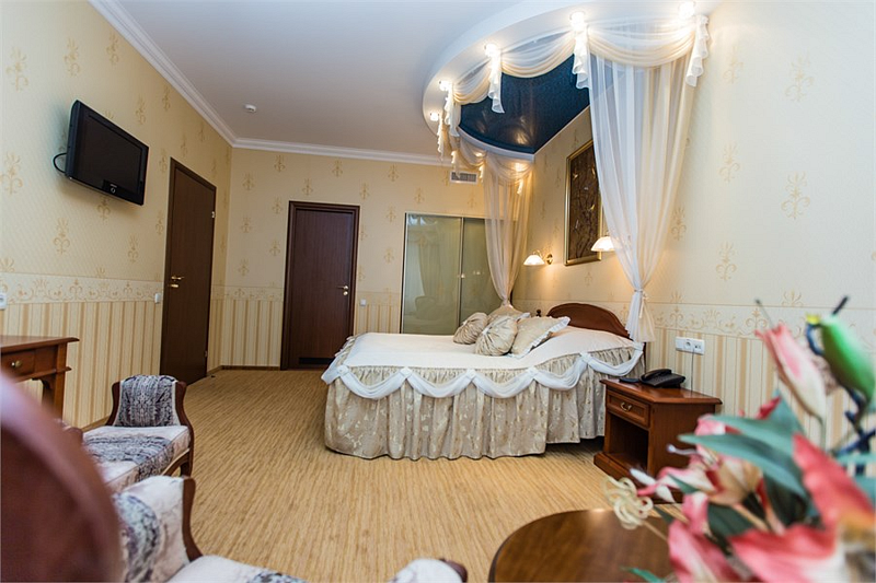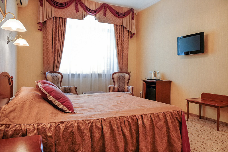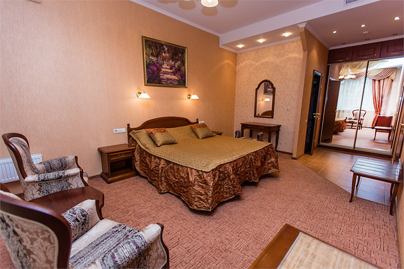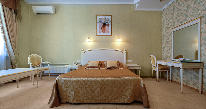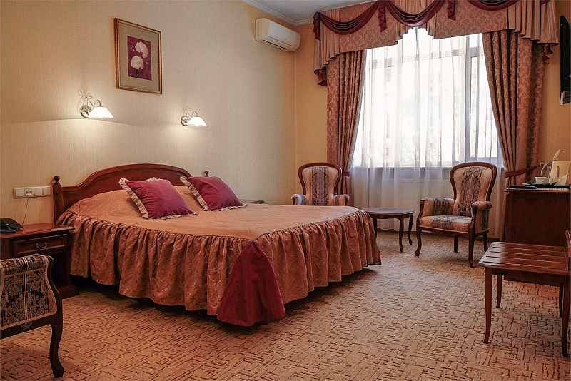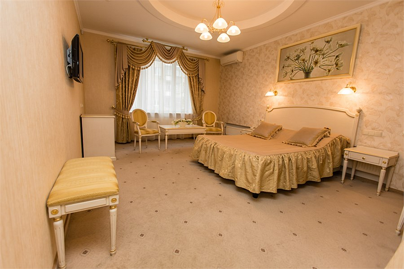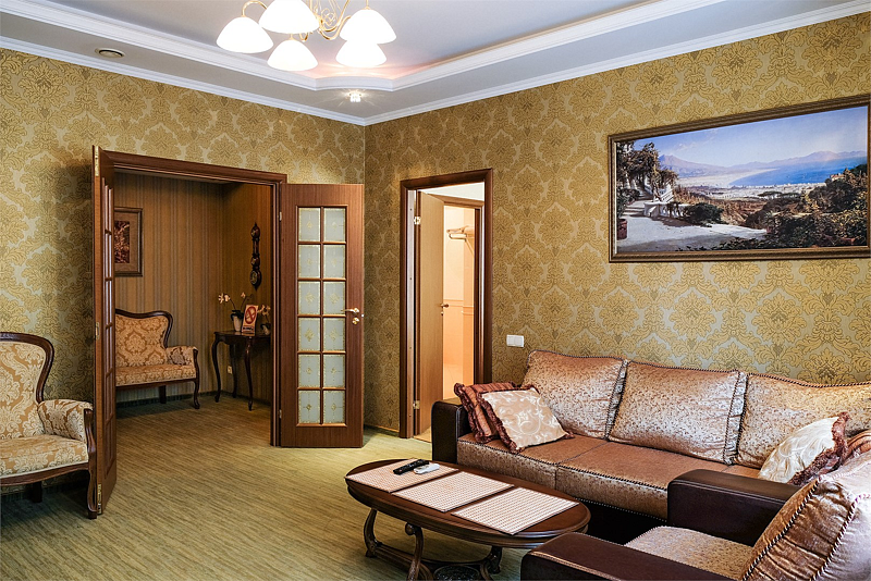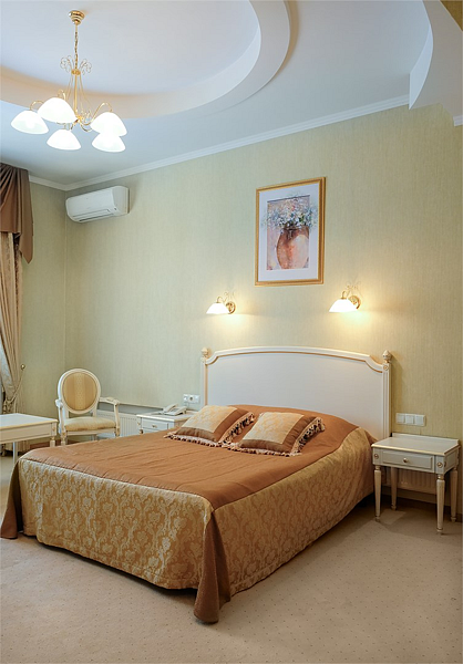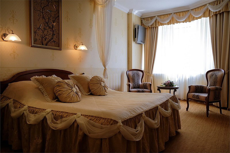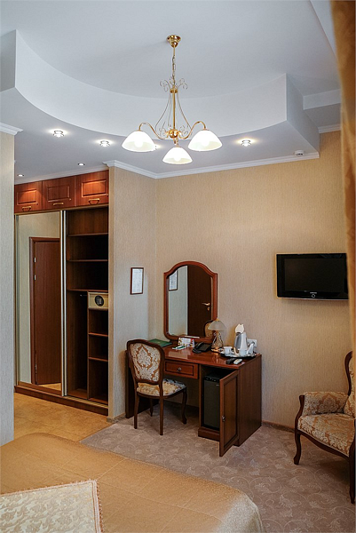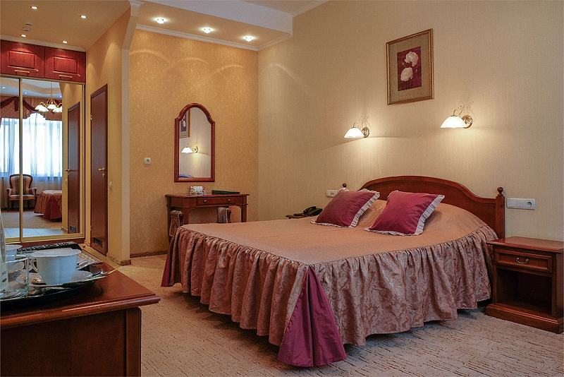 Классическая роскошь номера в сочетании с деловой скромностью, никого не оставляет равнодушным. Успешные бизнесмены и руководители организаций по достоинству ценят дни, проведенные в номерах этой категории.