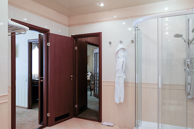 Номера отличаются безупречным интерьером, выполненном в классическом стиле, который идеально сочетается с оригинальными дизайнерскими идеями. Сантехника от ведущих мировых производителей гармонично дополняет общее композиционное решение ванных комнат.