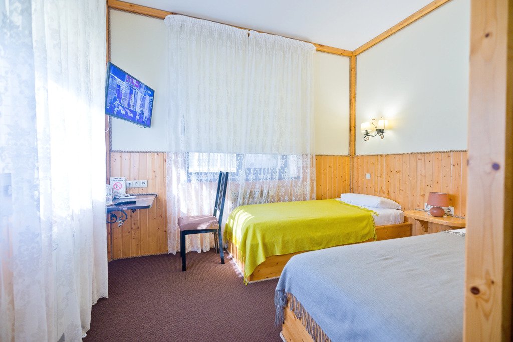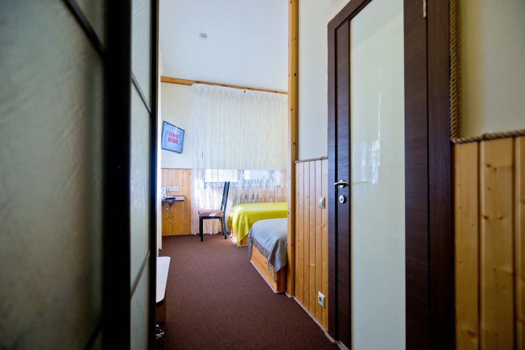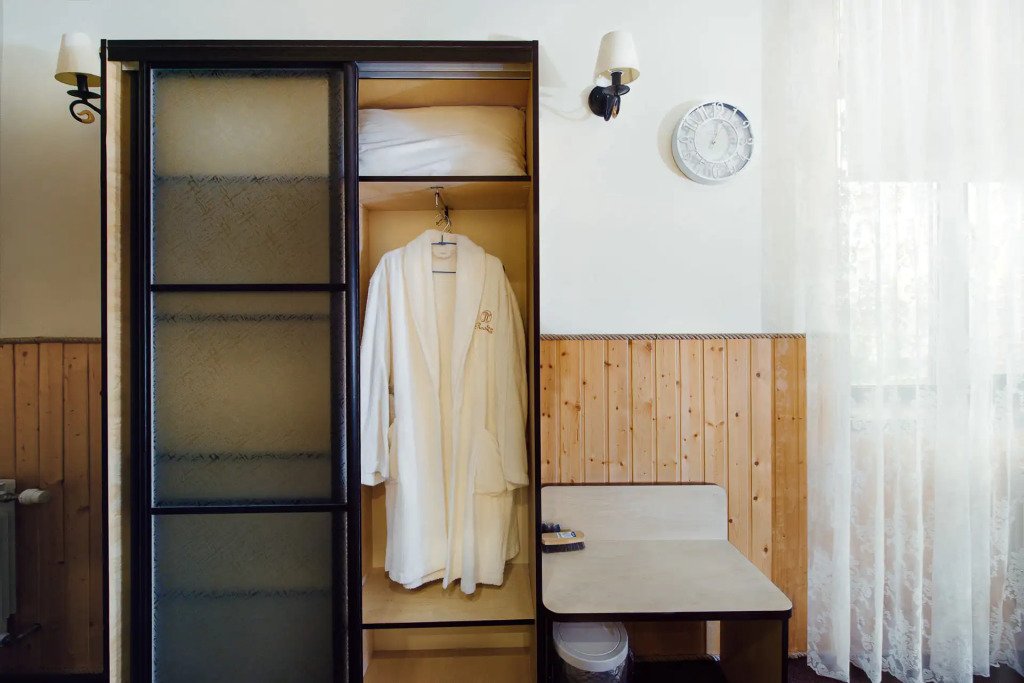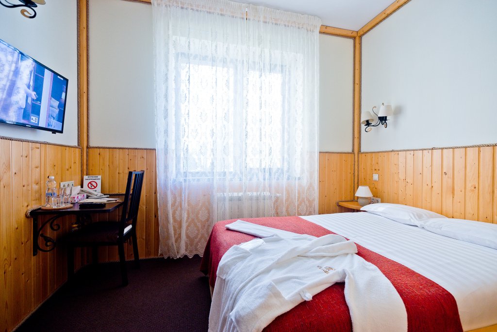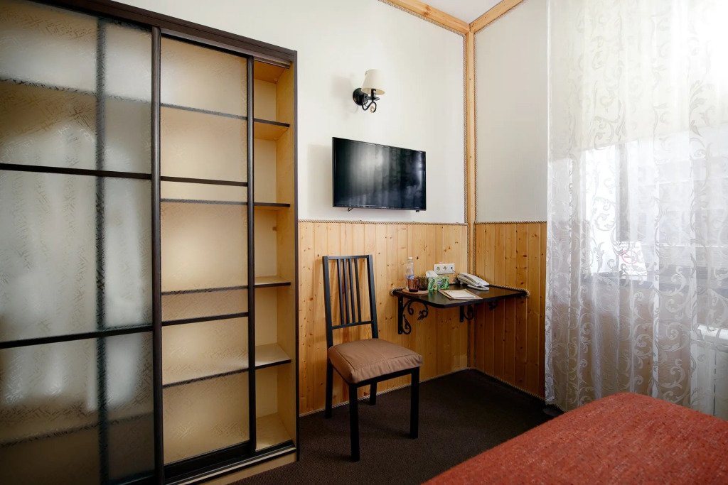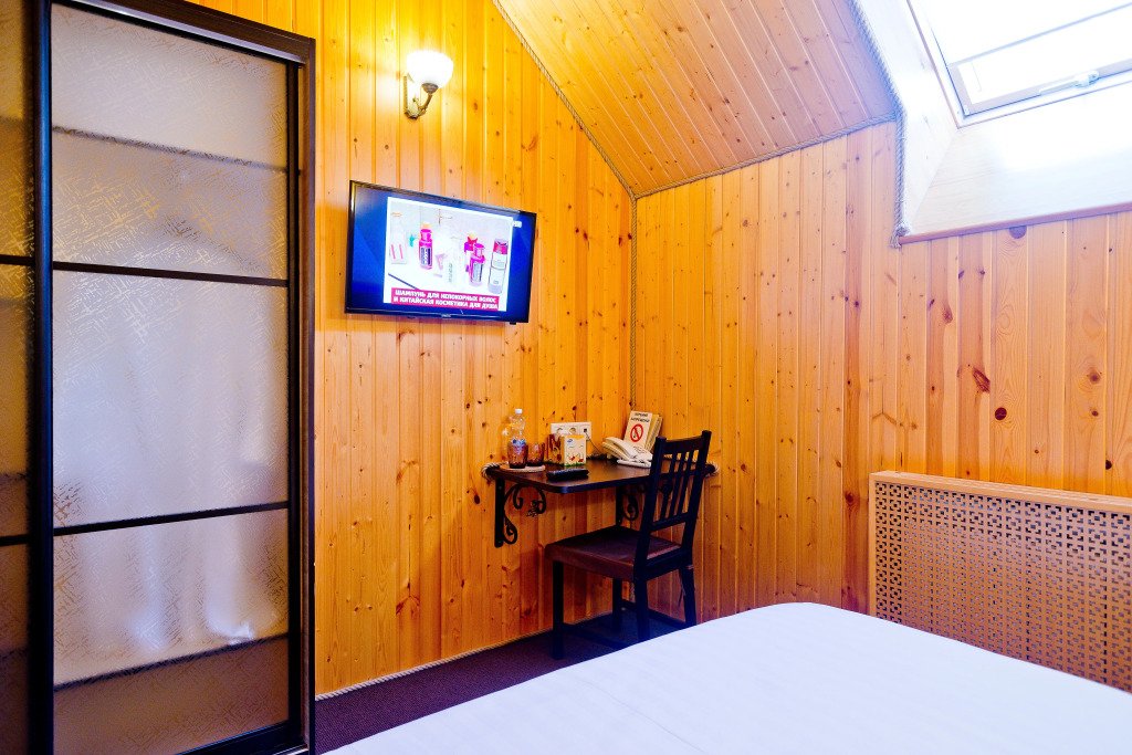 Номер уютно обставлен и оснащён необходимым, чтобы отдохнуть после долгого и насыщенного дня. Имеются телевизор и халат. Перечисленные услуги есть не во всех номерах.
