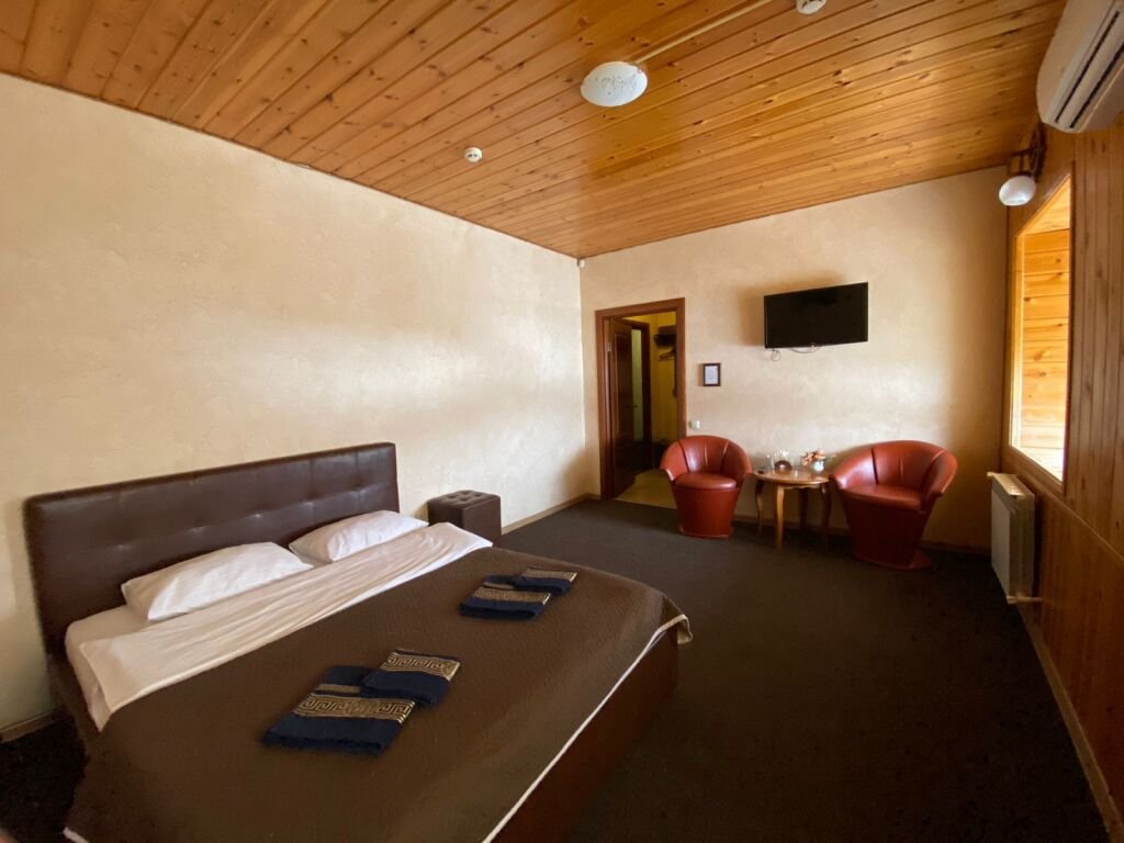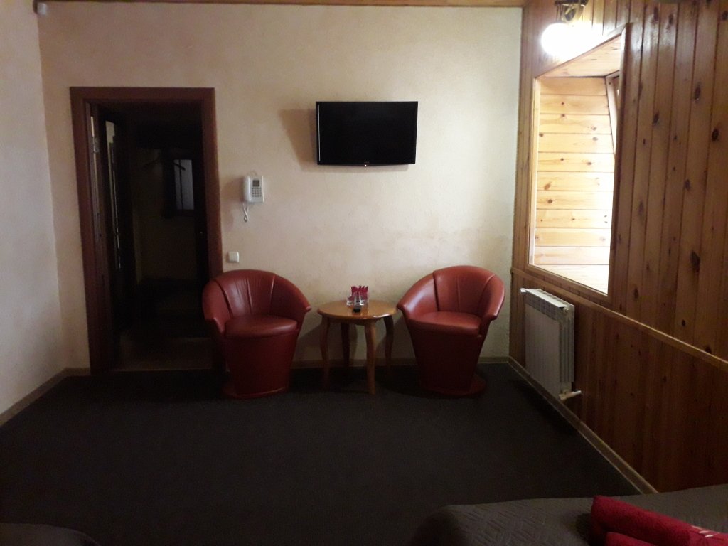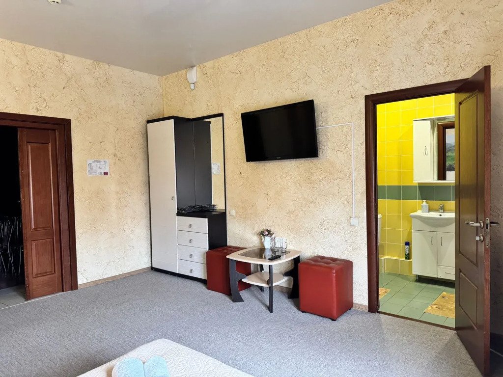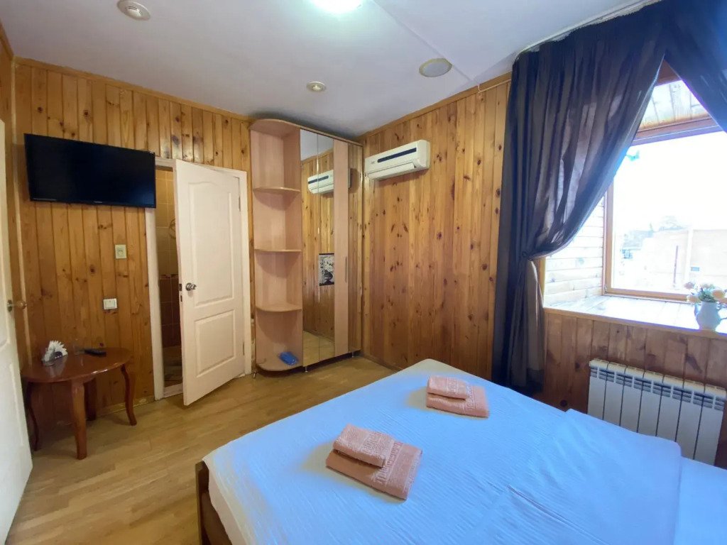 Номер уютно обставлен и оснащён необходимым, чтобы отдохнуть после долгого и насыщенного дня. Имеются телевизор и халат. Перечисленные услуги есть не во всех номерах.