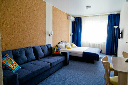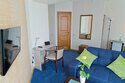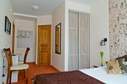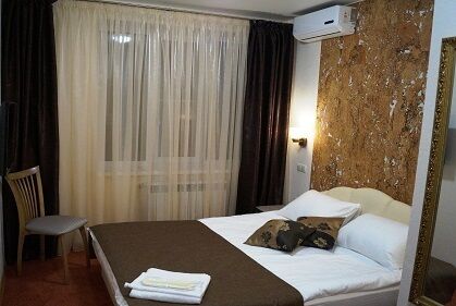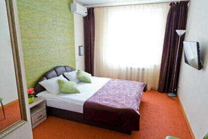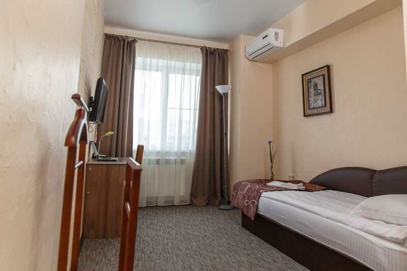В номере: 1-спальная с ортопедическим матрасом, шкаф, прикроватная тумба, компьютерный столик, стул, ТВ с USB, кондиционер, зеркало.
