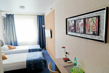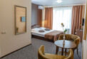 В номере: две отдельные кровати с ортопедическими матрасами, прикроватная тумба, журнальный столик, ТВ с USB, кондиционер, зеркало, холодильник, гардероб.