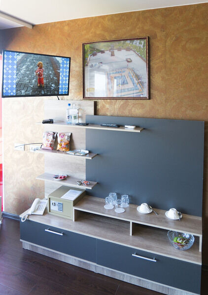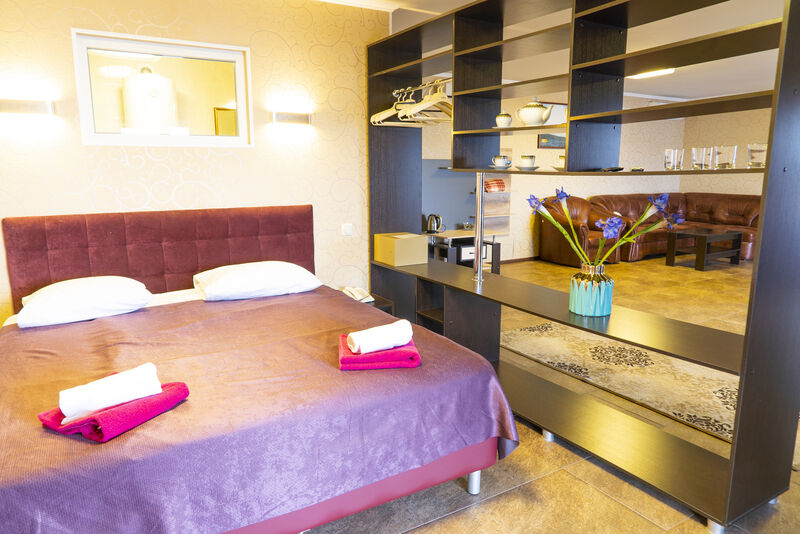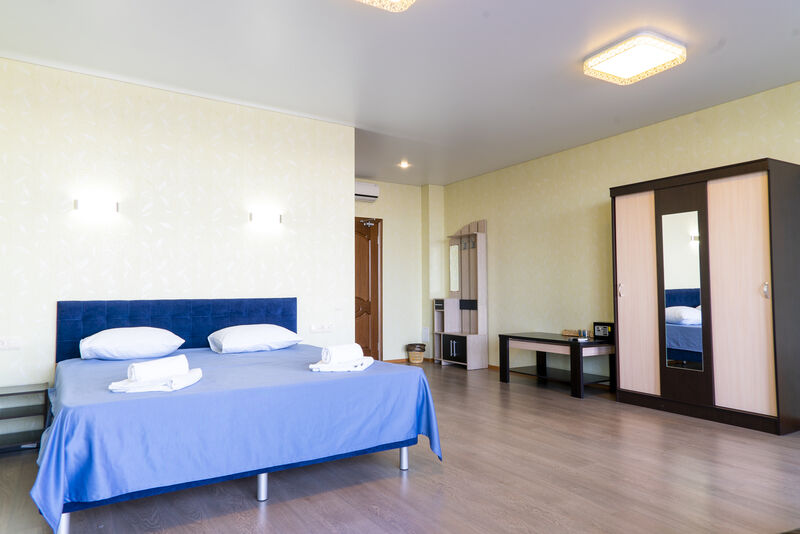 Площадь номера 28 кв.м., первая линия от Волги с шикарным панорамным видом и собственным балконом. В каждом номере находятся 2 отдельные или одна большая кровать, телевизор, санузел с душем, минихолодильник, кондиционер. Возможно дополнительное место в номере.