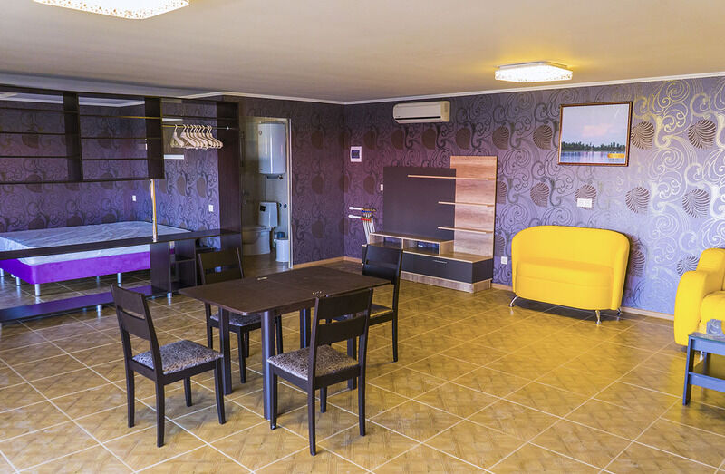 Площадь 42 кв.м., первая линия от Волги с шикарным панорамным видом. В номере находятся одна двуспальная кровать, большой раскладной диван, телевизор, санузел с душем,кондиционер.