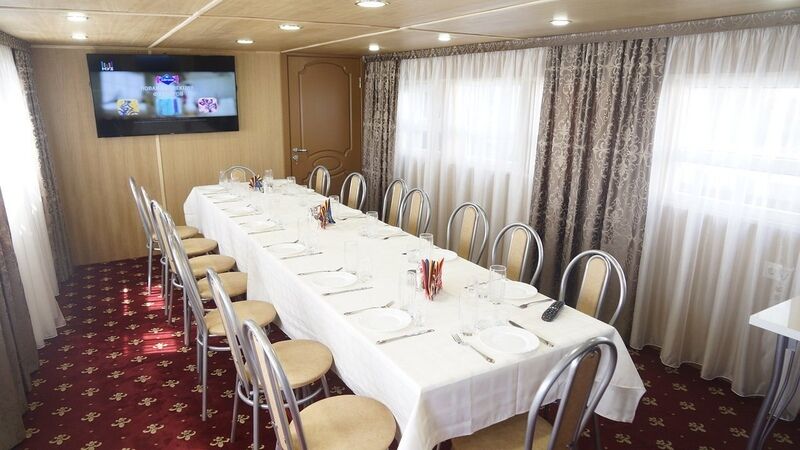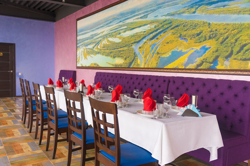 На территории гостиницы работает ресторан русской и европейской кухни, который вмещает до 150 человек, а также летнее кафе на 80 мест. Питание сервируется по меню. Также имеется зона барбекю.