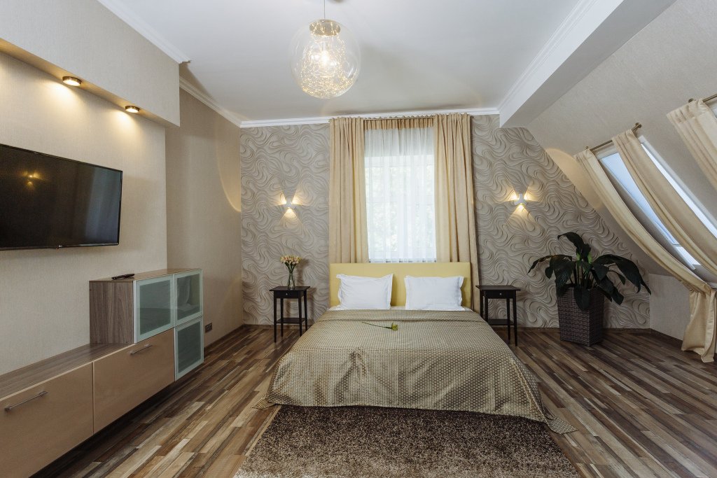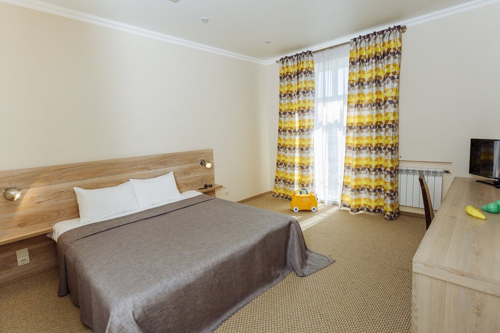 Номер уютно обставлен и оснащён необходимым, чтобы отдохнуть после долгого и насыщенного дня. Имеются телевизор. Перечисленные услуги есть не во всех номерах.