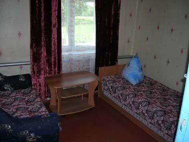 В доме 3 комнаты для проживания и кухня, где имеется печь для дополнительного обогрева и сушки вещей. Кухня укомплектована газовыми плитами, набором посуды для приготовления и личного пользования. Умывальники в кухонной зоне. Туалеты на освещенной территории рядом со зданием. Основной обогрев от центрального котла – кочегарки. Вода из артезианской скважины с глубины 110 метров. Рядом с входом оборудованы кострища с запасом дров и местами для размещения имеется фуршетный столик. Вся территория базы на площади не менее 1.5 га обработана от клеща и мелких грызунов.