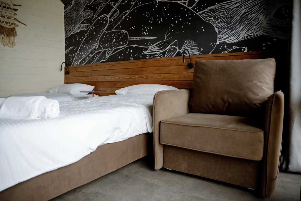 Номер уютно обставлен и оснащён необходимым, чтобы отдохнуть после долгого и насыщенного дня. Имеются телевизор и халат. Перечисленные услуги есть не во всех номерах.