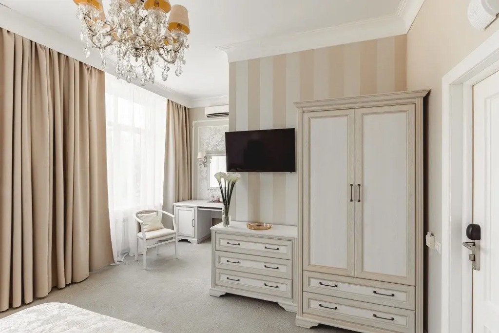 В номере имеется телевизор и халат. Перечисленные услуги есть не во всех номерах.