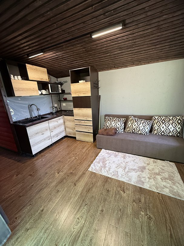 Для проживания гостей предлагается уютный дом с удобствами и видом на озеро, оснащенный всем необходимым для вашего комфортного отдыха. В доме имеется кухня, оборудованная бытовой техникой и набором посуды, современная мебель, терраса и выход на специально оборудованную зону загара на втором этаже.
