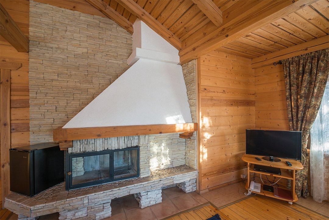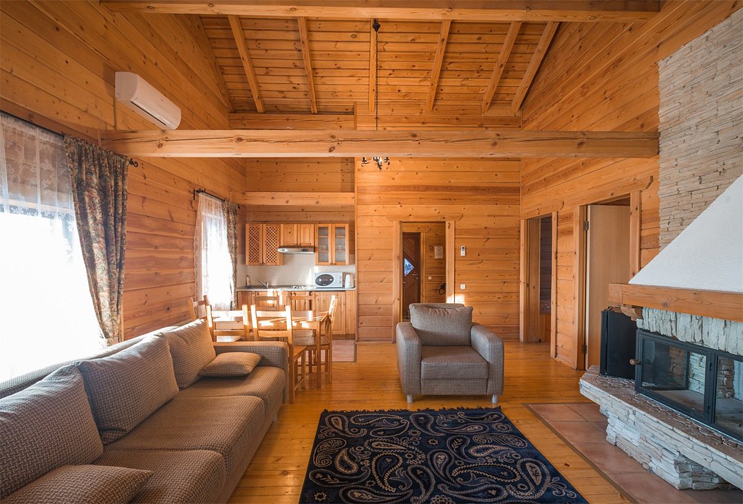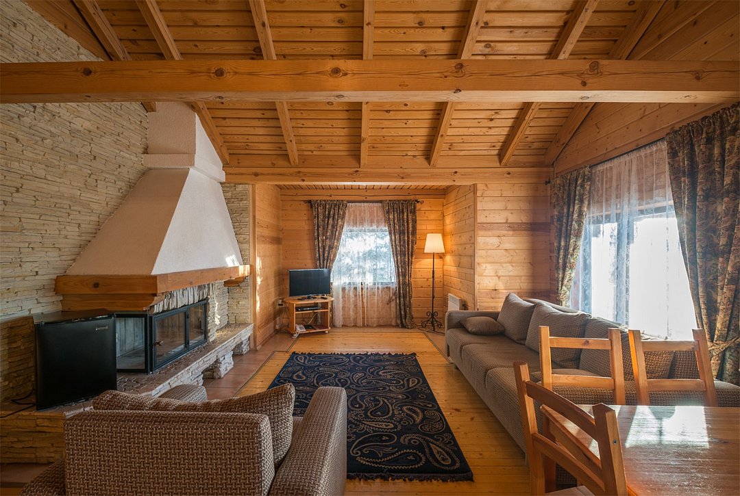 Деревянный дом с двумя спальнями, кухней и сауной. Находится на нижнем плато, в пешей доступности от горнолыжного подъемника.