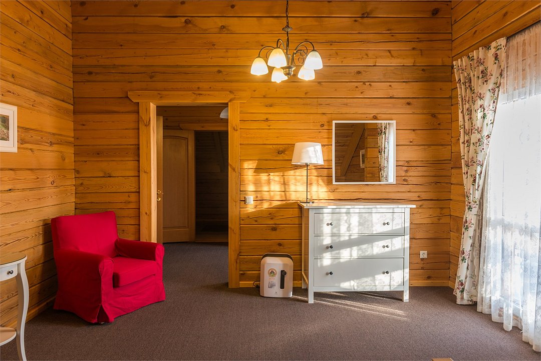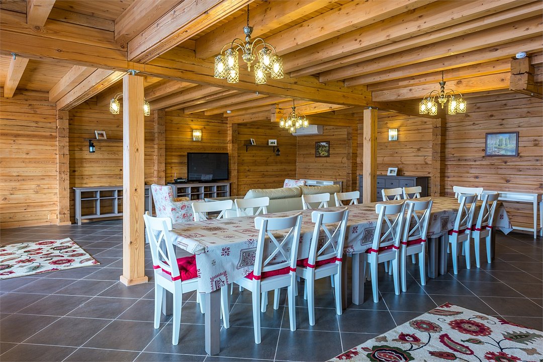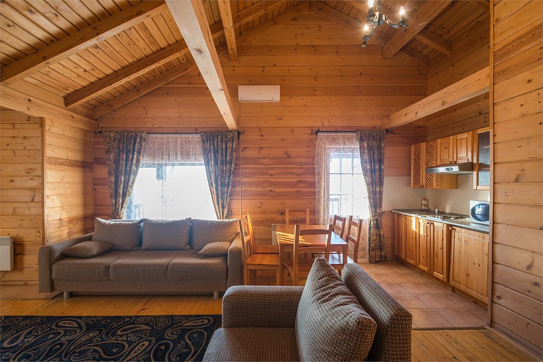 Деревянный дом из соснового бруса с собственной сауной. Идеально подходит для большой семьи или компании друзей из 4-х человек. Расположен на верхнем плато, рядом с горнолыжным склоном.