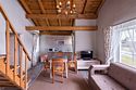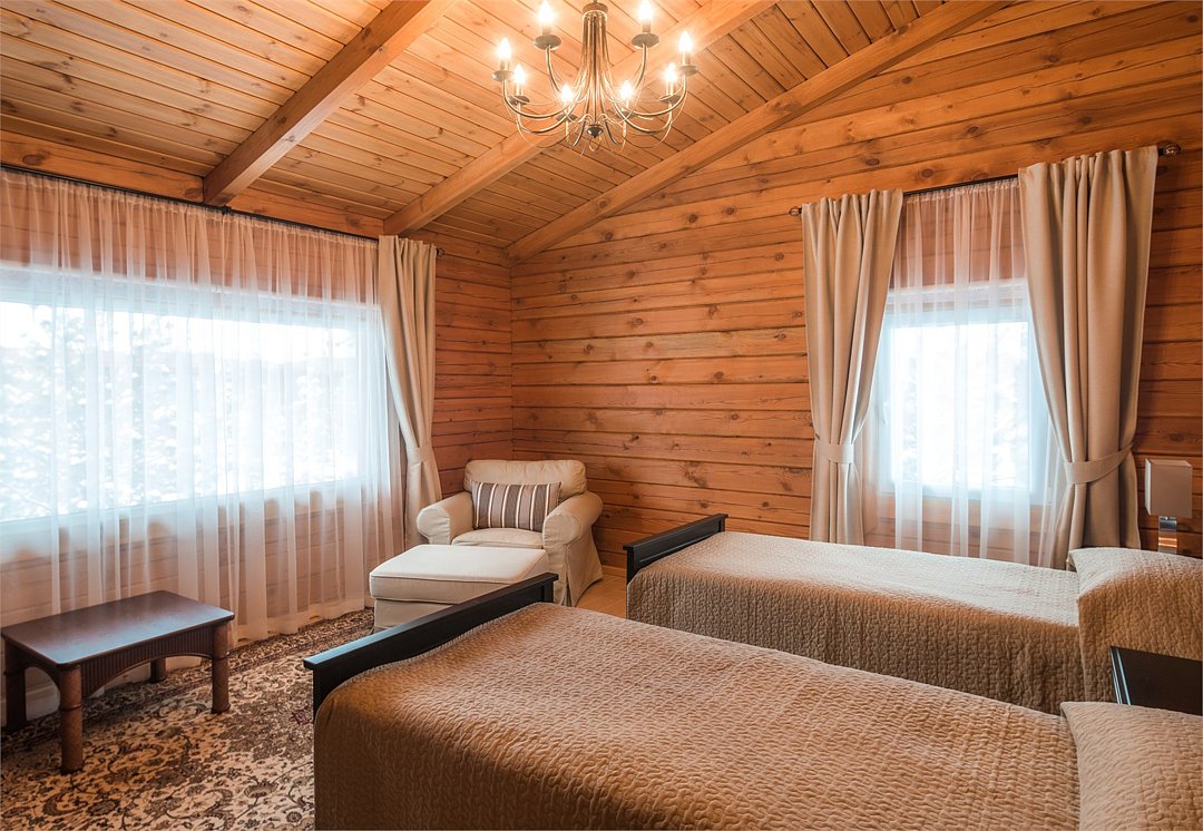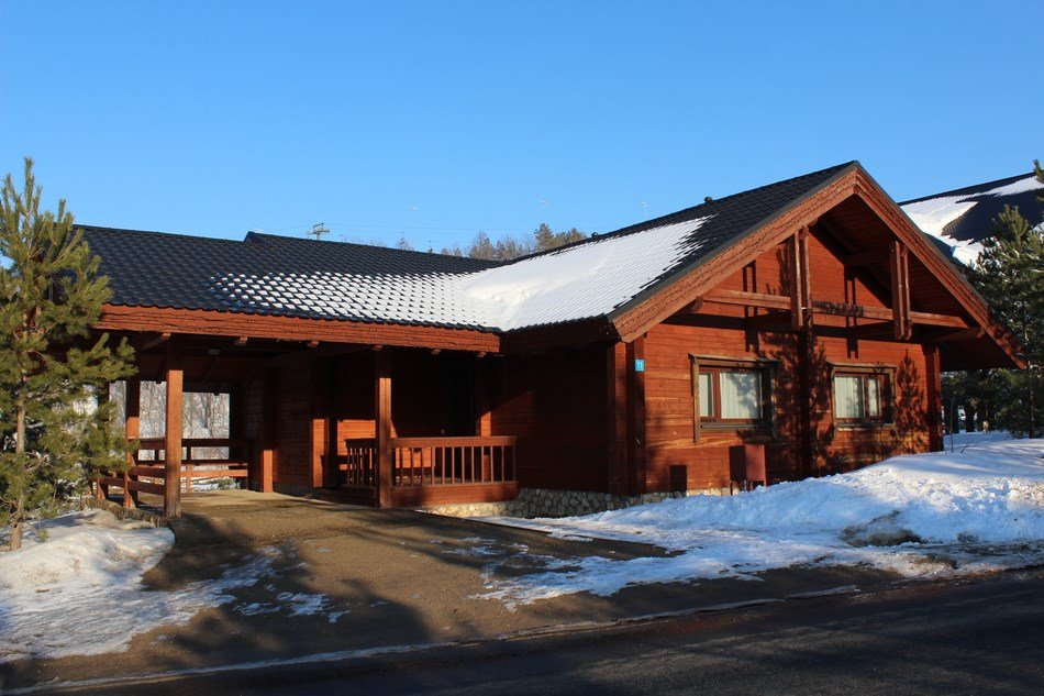 Дом с 2 спальнями (в обоих спальнях две раздельные кровати), с кухней, без сауны. Находится в 4-х километрах от основной территории. Вам нужен личный автомобиль, чтобы добраться до горнолыжных трасс или кафе.