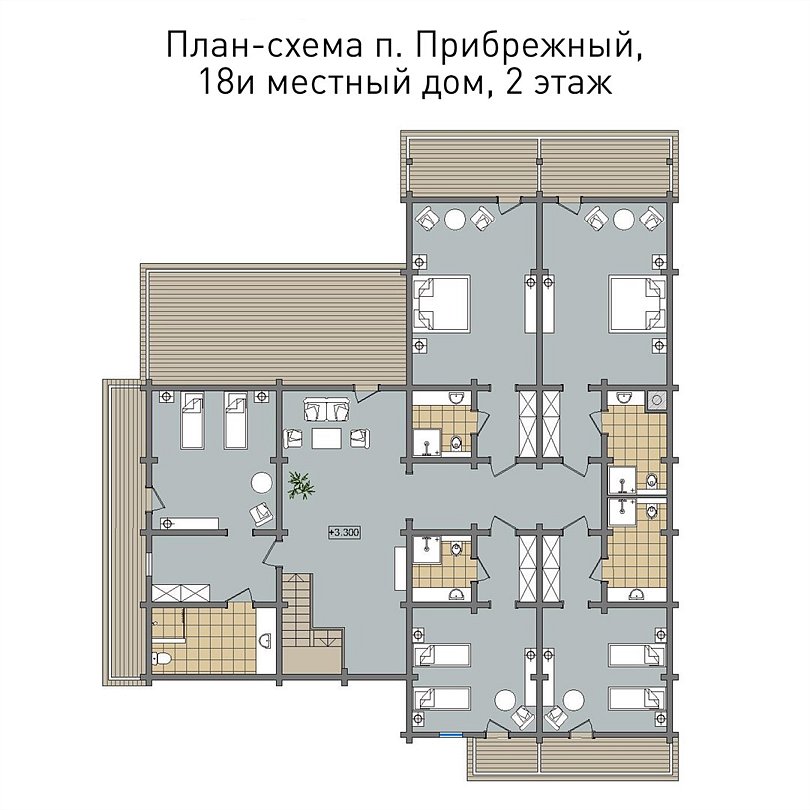 70 м2 · 4-х местный гостиничный номер + 2 доп. места