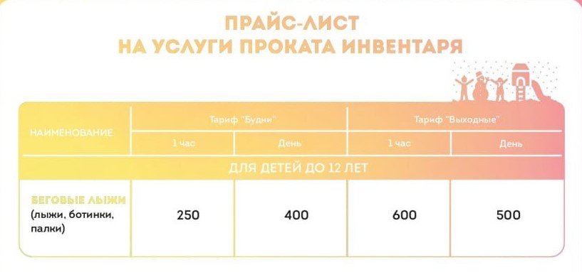 Услуга проката инвентаря для детей до 12 лет включительно предоставляется с предъявлением свидетельства о рождении ребёнка.
