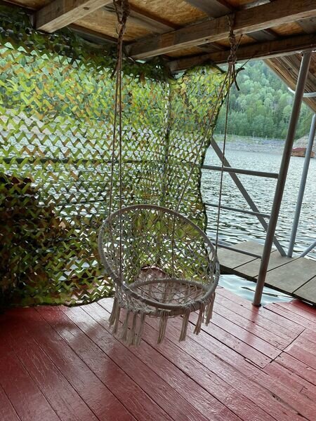 Также на территории базы имеется баня на жадеитовых камнях, после чего можно искупаться в Енисее. Имеется веранда с обеденным столом, мангальная зона. База