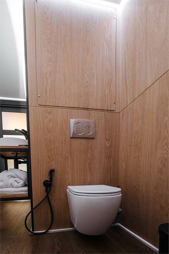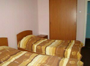В номере две изолированные, двухместные спальни. В спальне – две односпальные кровати, тумбочки, плательный шкаф, телевизор, 2 стула. На две спальни общий туалет, душ и два умывальника.