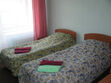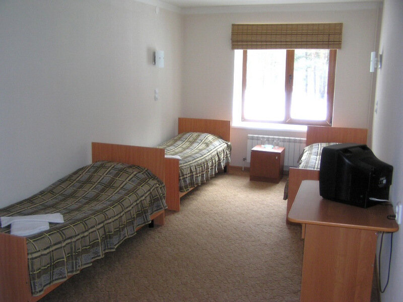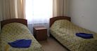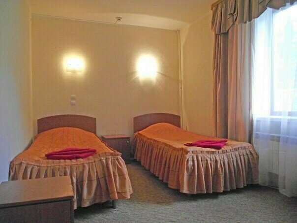 В номере: две односпальные кровати, плательный шкаф, тумбочки, телевизор, 2 стула. Душ и туалет в номере.