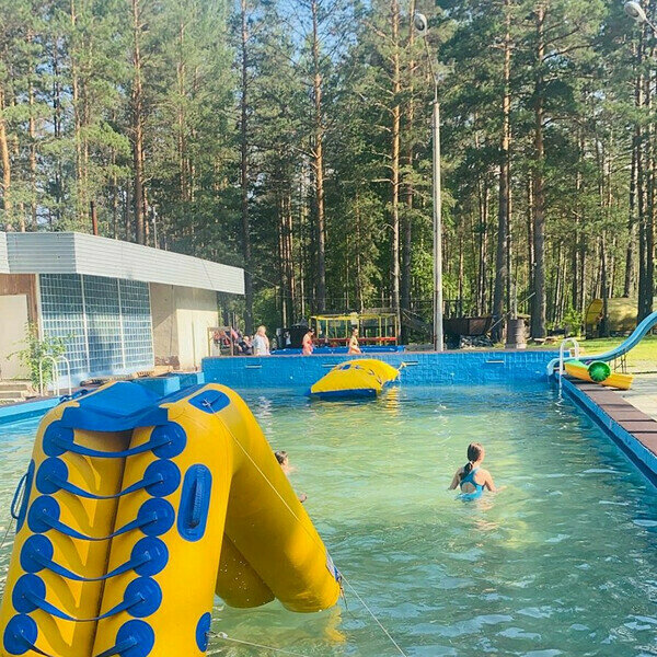 На территории базы отдыха: бассейн, 2 кафе, пляж, бильярд, прокат спортивного и горнолыжного инвентаря, мангальные площадки. Для любителей горнолыжного отдыха в 9 км находится канатно–кресельный подъёмник туристического комплекса «Гладенькая».