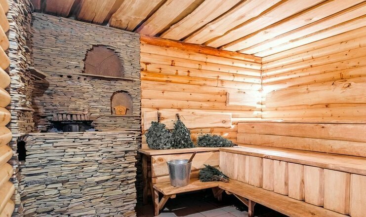 Для отдыха в бане предусмотрено: уютная комната с камином, парилка, душевые, бассейн. А для любителей острых ощущений, оборудован подвесной ушат «Бодрость».