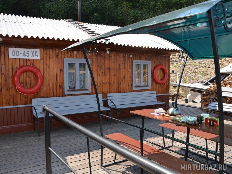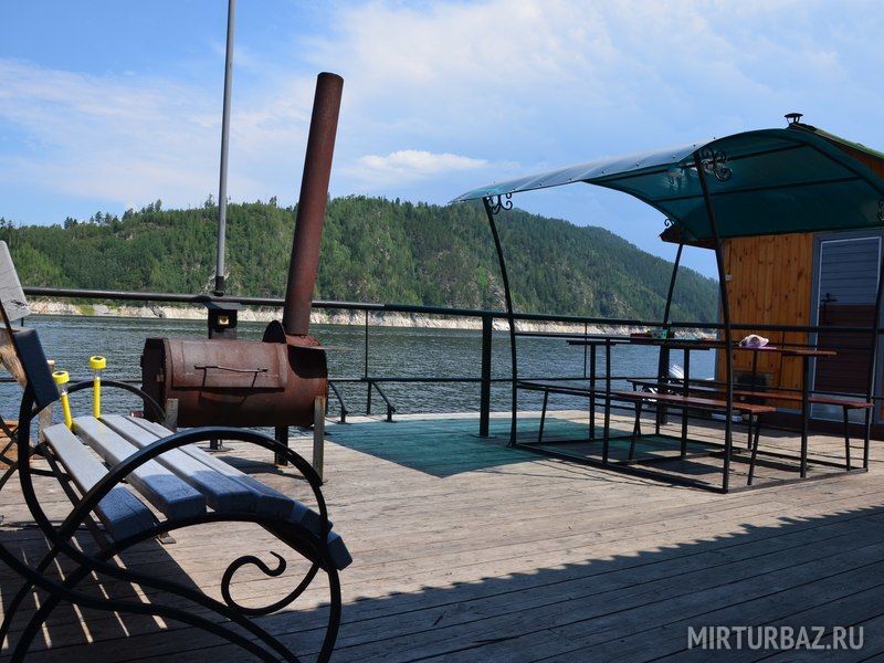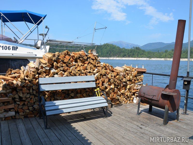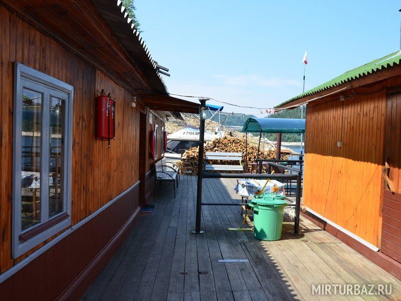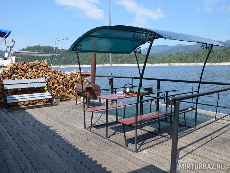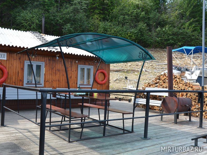 На территории плавбазы располагается летняя беседка с мангалом. К мангалу прилагаются решётка барбекю, шампура и дрова в неограниченном количестве.