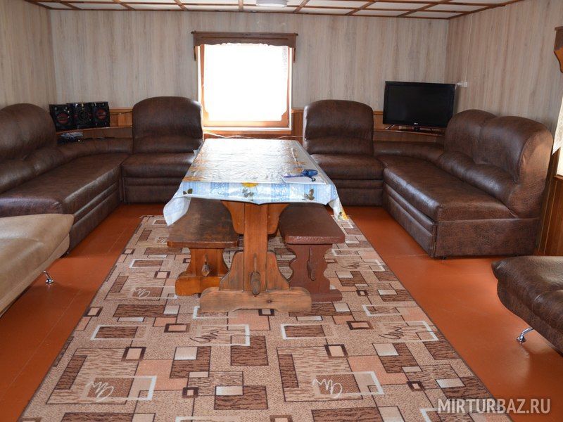 В большой комнате отдыха находятся: телевизор, современная, музыкальная мультисистема, караоке.
