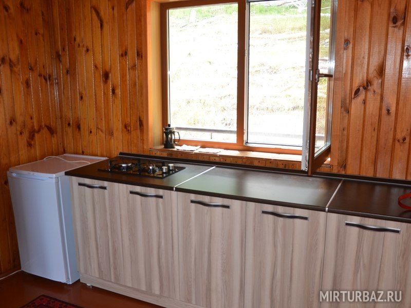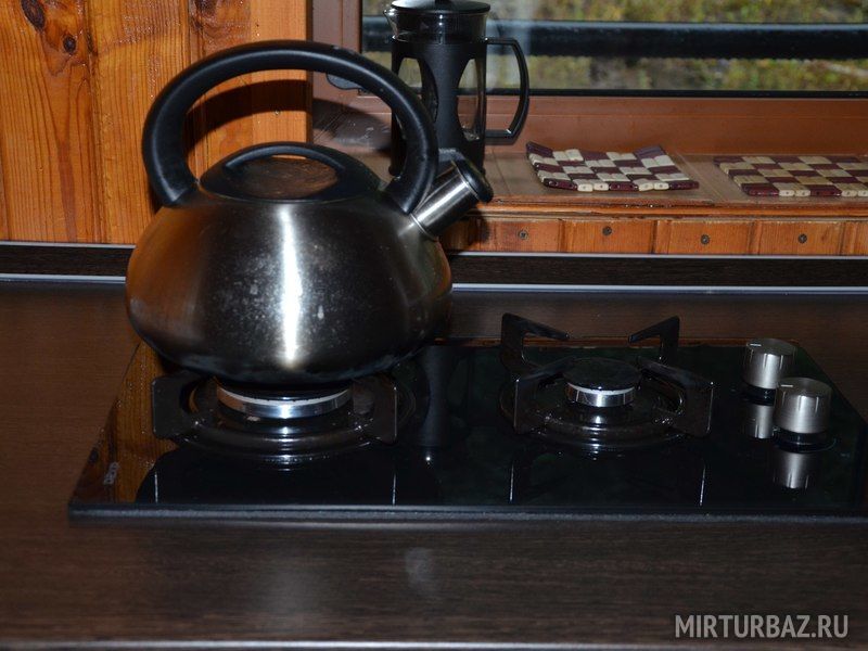 Имеется кухня, оборудованная всем необходимым для комфортного приготовления пищи — холодильник, современная газовая двухкомфорочная панель, а также весь необходимый набор посуды (кастрюли, сотейники, сковороды, казан, тарелки, кружки, разделочные доски, ложки, вилки).