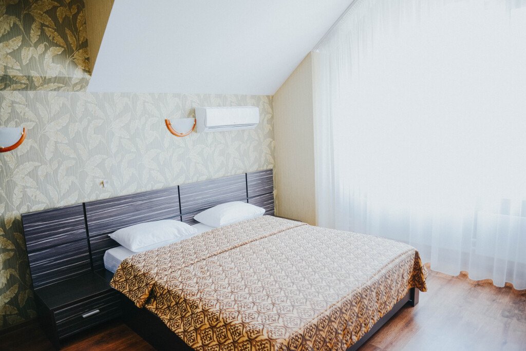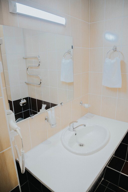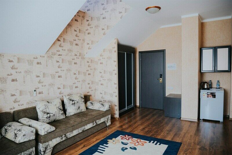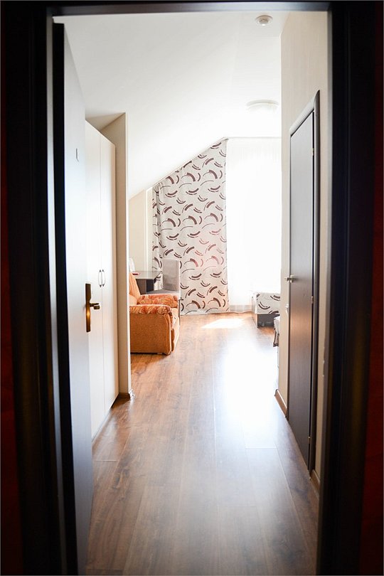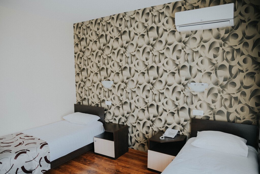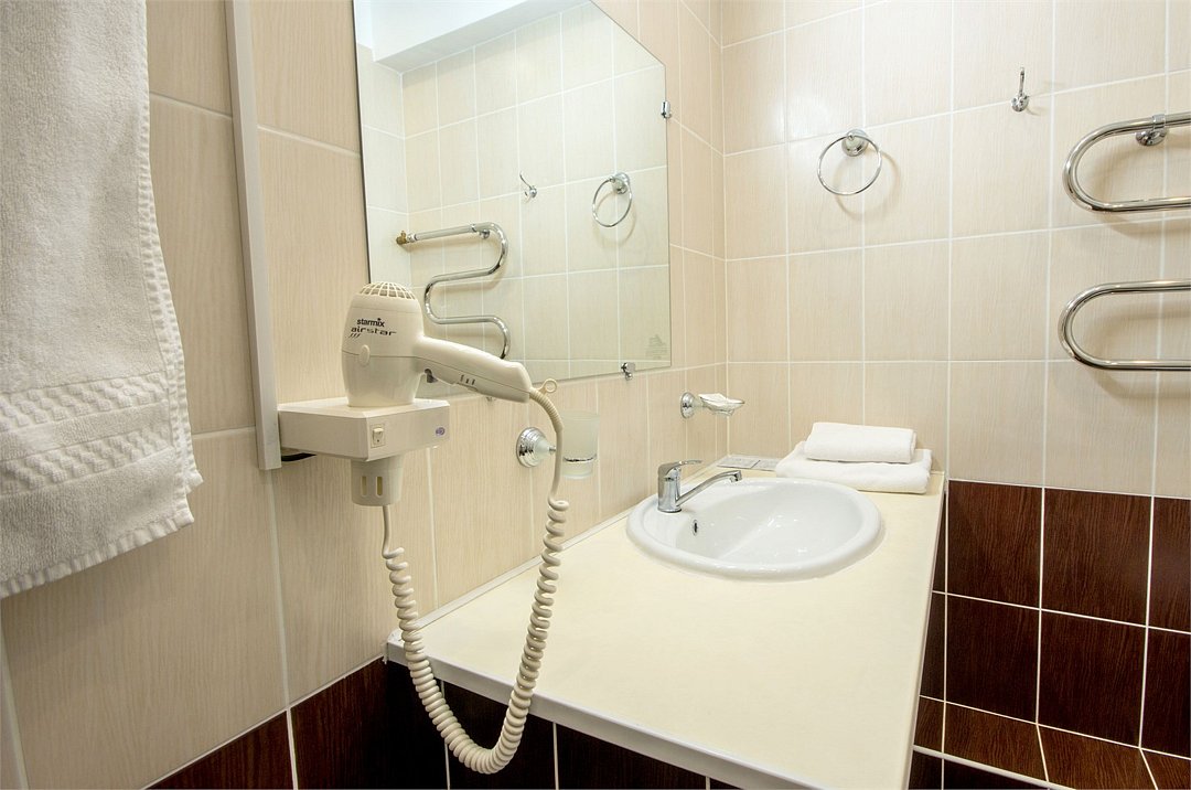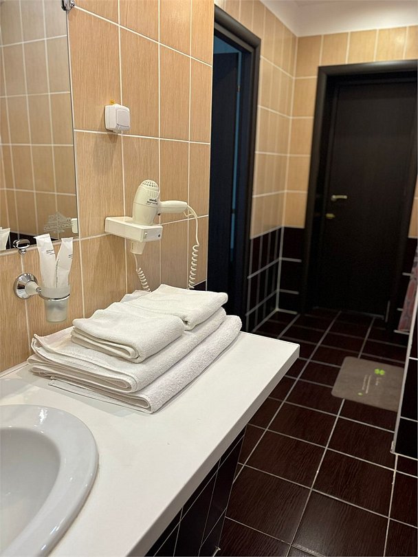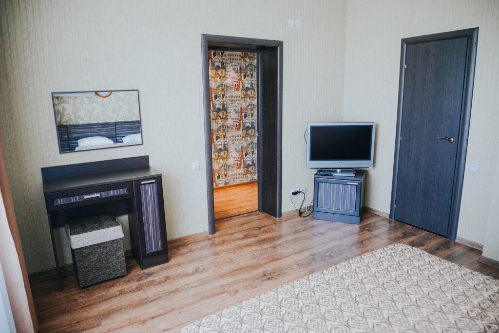 Номер площадью 24-26 кв.м., состоящий из одной жилой комнаты с 2-спальной кроватью, санузел с душевой кабиной. Комплектация: телевизор, телефон, холодильник, продукция индивидуального пользования, фенУслуги и удобства