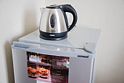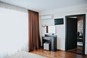 телевизор, интерактивное телевидение, Wi-Fi, телефон, холодильник, светильник, настольные лампы, фен, электронные замки, обогреватель, душевая кабина, две односпальные кровати, стулья, шкаф для одежды, письменный стол, зеркало, чайный набор, чайник, унитаз, раковина, питьевая вода, отопление, вид на городВ номере