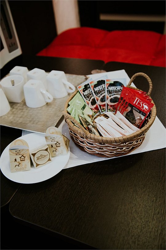 На стойке можно взять в пользование зонтик (если на улице дождь), купить чашечку зернового кофе (аппарат тут же) за 100 рублей, правда выбор не большой - только эспрессо, но и то хорошо!