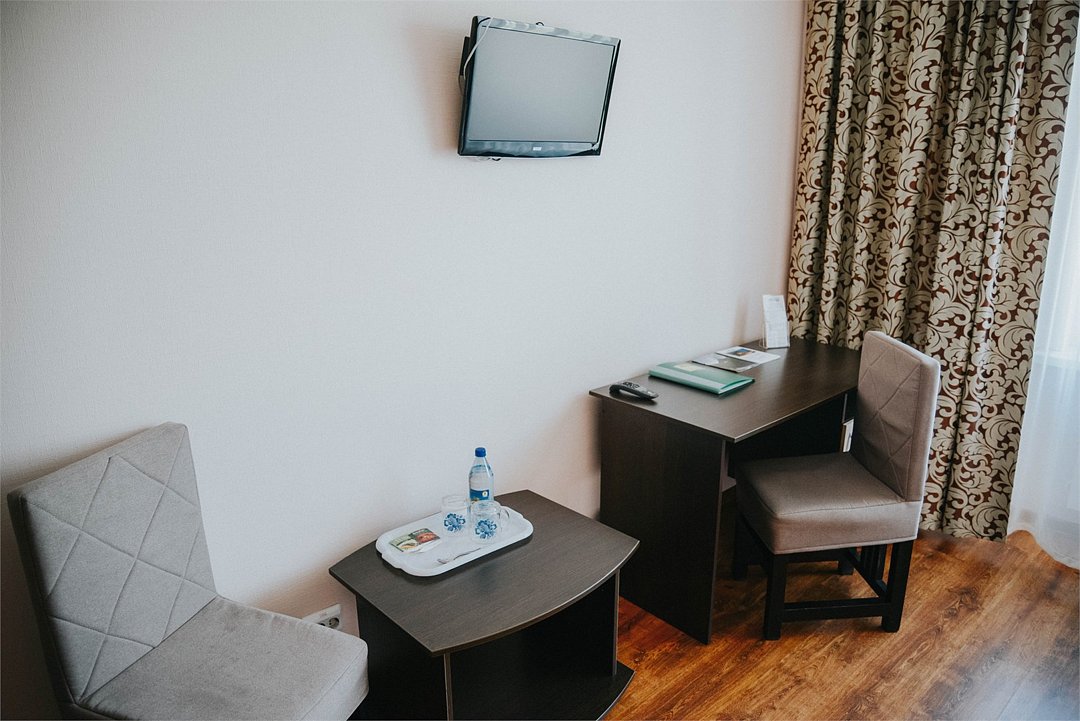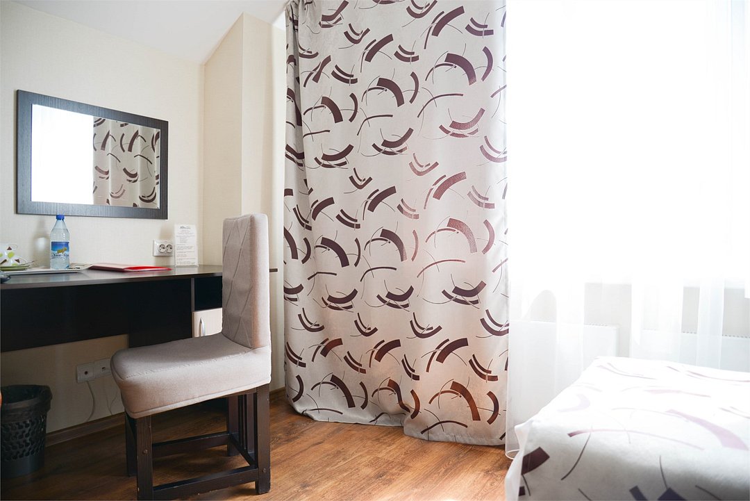 Путешествие по работеОтличный отель!Спасибо огромное! Ни разу не пожалели на счёт выбора остановки в вашем отеле. Я и мама в полнейшем восторге. Администратору отдельное спасибо за предоставленную информацию и обслуживание. Мы приедем ещё. Ваш отель соответствует предложенной цене. Шикарный вид из окна, прекрасная мягкая кровать, удобное рабочее место и чистая красивая душевая комната. Дополнительно были предложены сауна, спа-салон и массажный кабинет. Очень удобно и несмотря на то, что цель поездки была деловой, мы успели качественно отдохнуть!