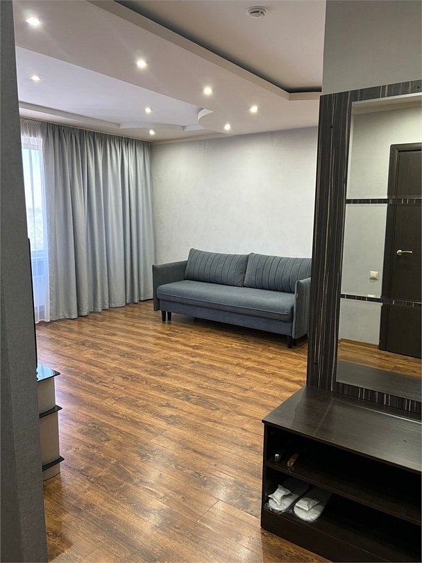 два телевизора, Wi-Fi, телефон, холодильник, кондиционер, светильник, настольные лампы, фен, электронные замки, душевая кабина, косметические средства, двуспальная кровать, диван, стулья, шкаф для одежды, зеркало, две комнаты, чайный набор, набор посуды, чайник, унитаз, раковина, мягкая мебель, питьевая вода, отопление, вид на городВ номере