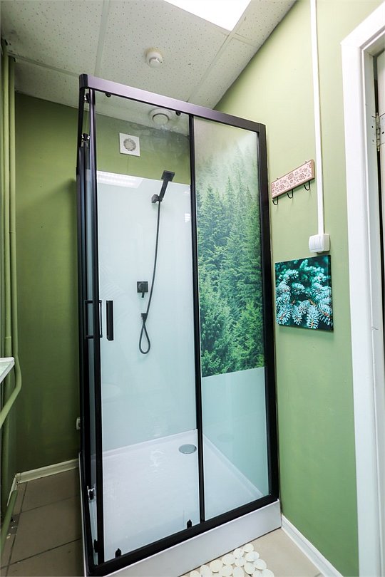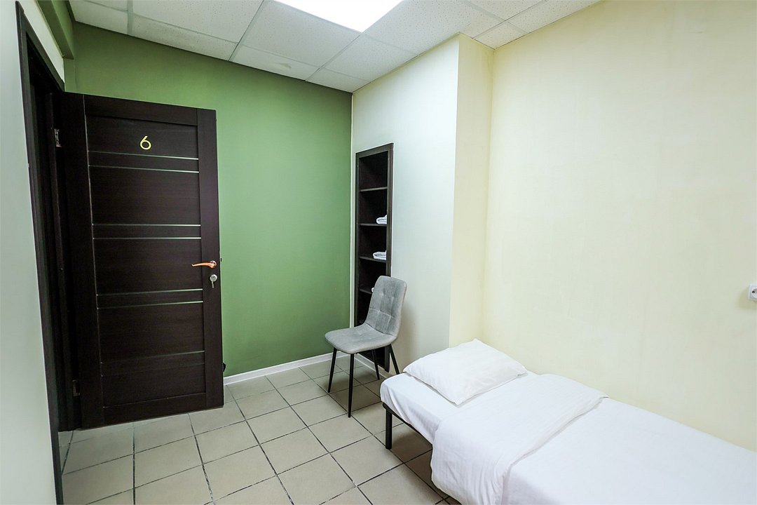 Номер с одной двухспальной кроватью, туалет и умывальник в номере, светильники, полочки для личных вещей. Ванна/душ на этажеУслуги и удобства
